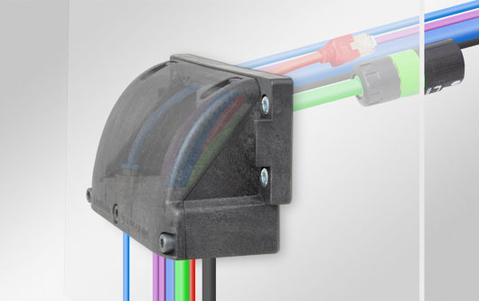 With the new distribution box, centrally routed cables can be distributed 360° in all desired directions. Cables with and without connectors can be routed, sealed with IP54 and strain relieved in accordance with EN 62444.