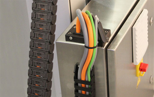 - Cable routing and strain relief within drag chains