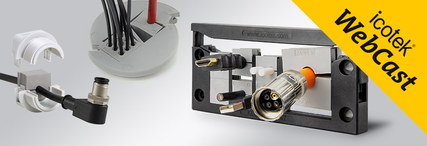 Wir erkl?ren die Basics! Mit der patentierten teilbaren Kabeleinführung von icotek lassen sich eine gro?e Anzahl an Leitungen mit vormontierten Steckern oder ohne Stecker sehr schnell und sicher in Geh?use oder Schaltschr?nke sowie Maschinen einführen, mit bis zu IP66 / IP68 und UL type 4X abdichten und gleichzeitig gegen Zug entlasten. Besonders praktisch ist eine solche Kabeleinführung zum Beispiel im Wartungsfall oder bei Nachrüstungen. Das WebCast wird einen besonderen Fokus auf die Tüllenvielfalt und deren Montage legen. Hier m?chten wir Ihnen eine übersicht über kleine, gro?e, ein- und mehrfachgeschlitzte Tüllen, aber auch unterschiedlichste flexible Mehrbereichstüllen geben.
