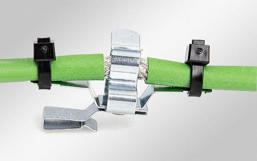 EMV Schirmklammern mit doppelter Zugentlastung für Rastmontage auf 35 mm Hutschiene.