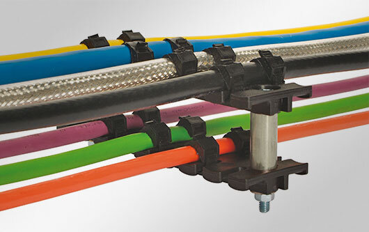 The modular stackable cable clamp MSMC is used for easy, quick and secure fastening of cables, pipes and other cylindrical components.
