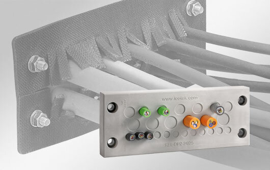 Plaque passe-cables robuste pour cables sans connecteurs, avec coupe-feu IFPS selon la norme EN 45545-3. Fonction serre-cable élevée.