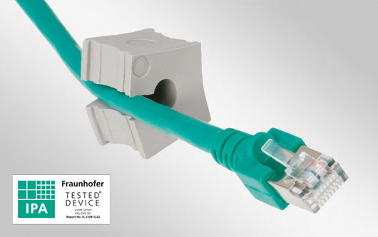 可分式 U 形電纜穿芯,適用于帶或不帶連接器的電纜(線徑范圍為 4 - 11 mm)。 免工具安裝。